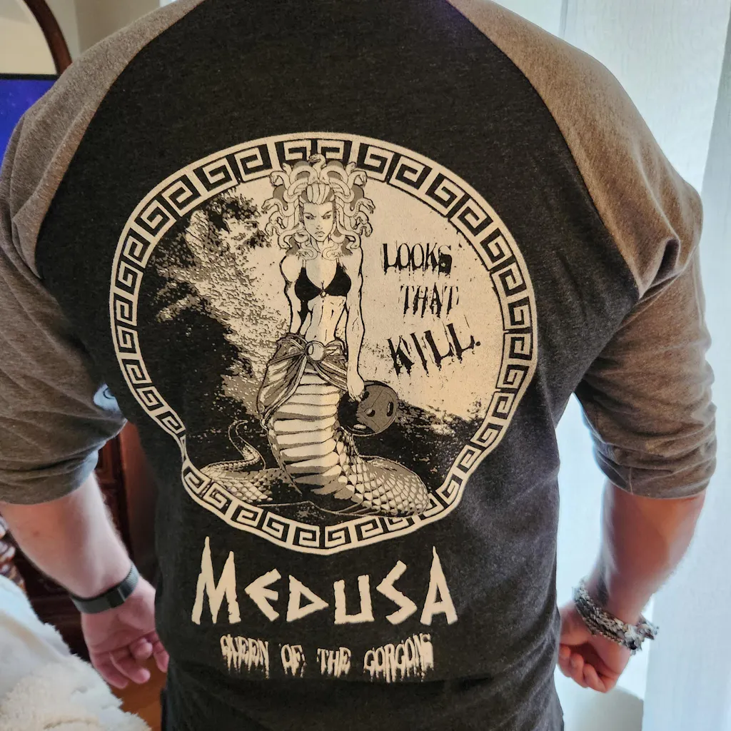 The Titan Series - Medusa shirt is designed for men and women who train with discipline and fearless agression. And who want to look good doing it. Inspired by Medusa, Queen of the Gorgons, this shirt represents raw strength and power. Taking "If Looks Could Kill" to the next Level in the gym.